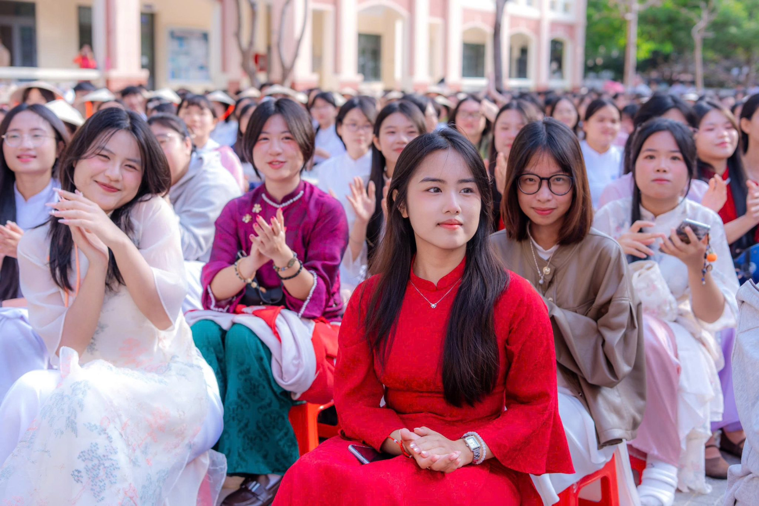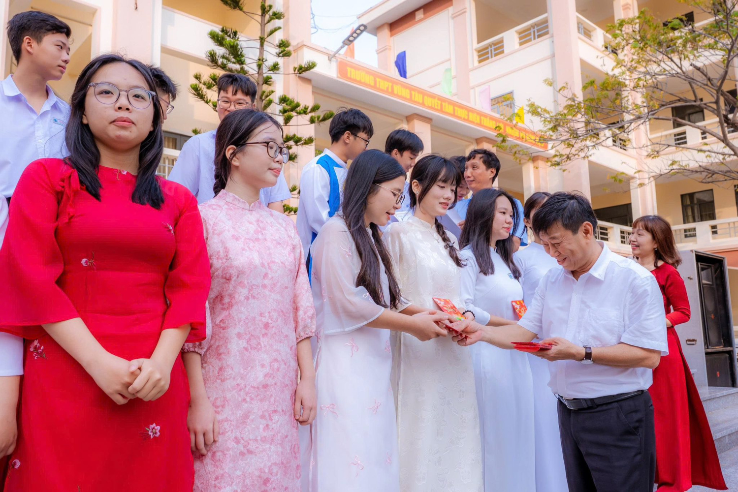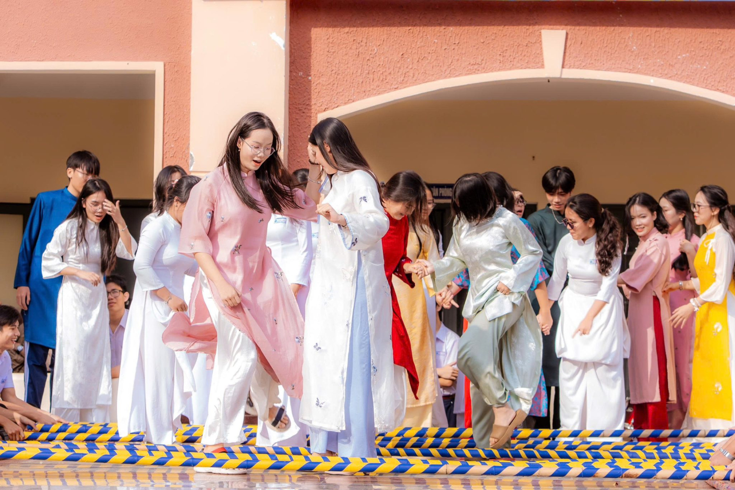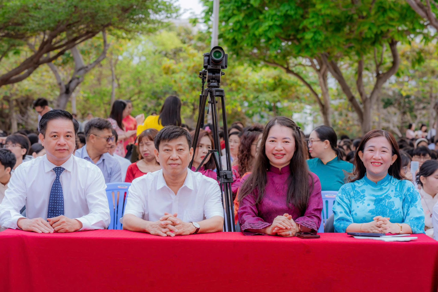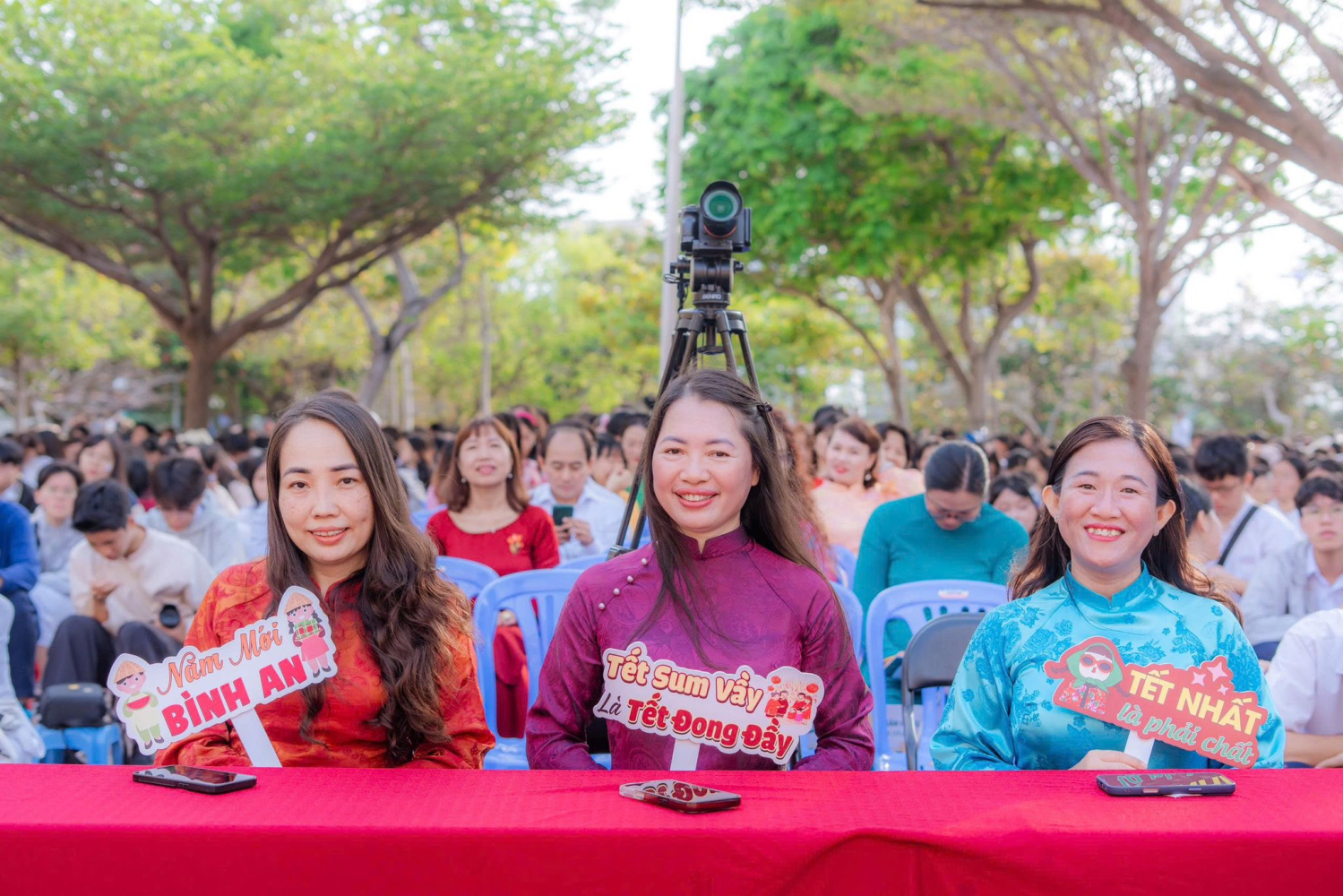 Không khí vui tươi tràn ngập sân trường với các tiết mục văn nghệ chào xuân, các điệu múa dân gian của các thầy cô giáo, các em học sinh, cựu học sinh góp phần lan tỏa không khí đoàn kết, ấm áp, chào đón một mùa xuân mới an lành và nhiều niềm vui.